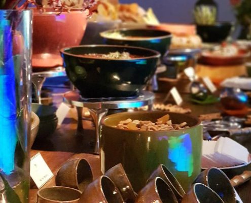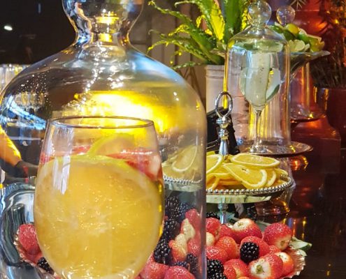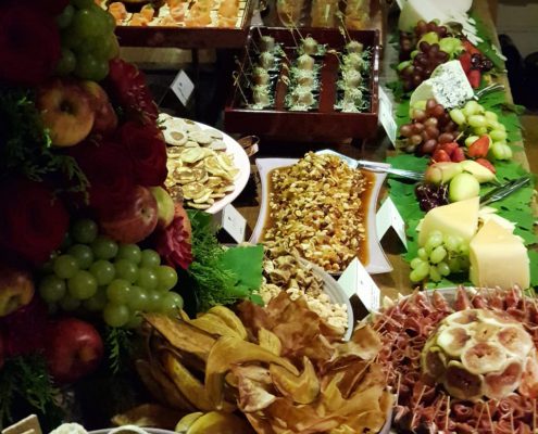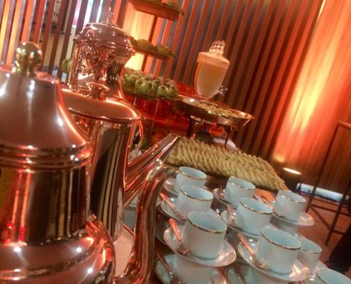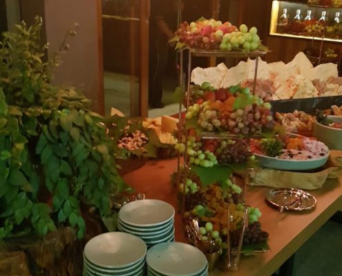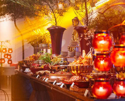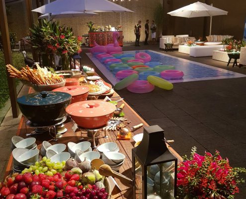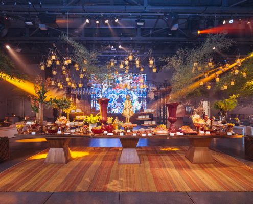 A apresentação do buffet, dos garçons e da decoração seguem o tema da festa ou estão relacionados ao tipo de cardápio a ser servido.
